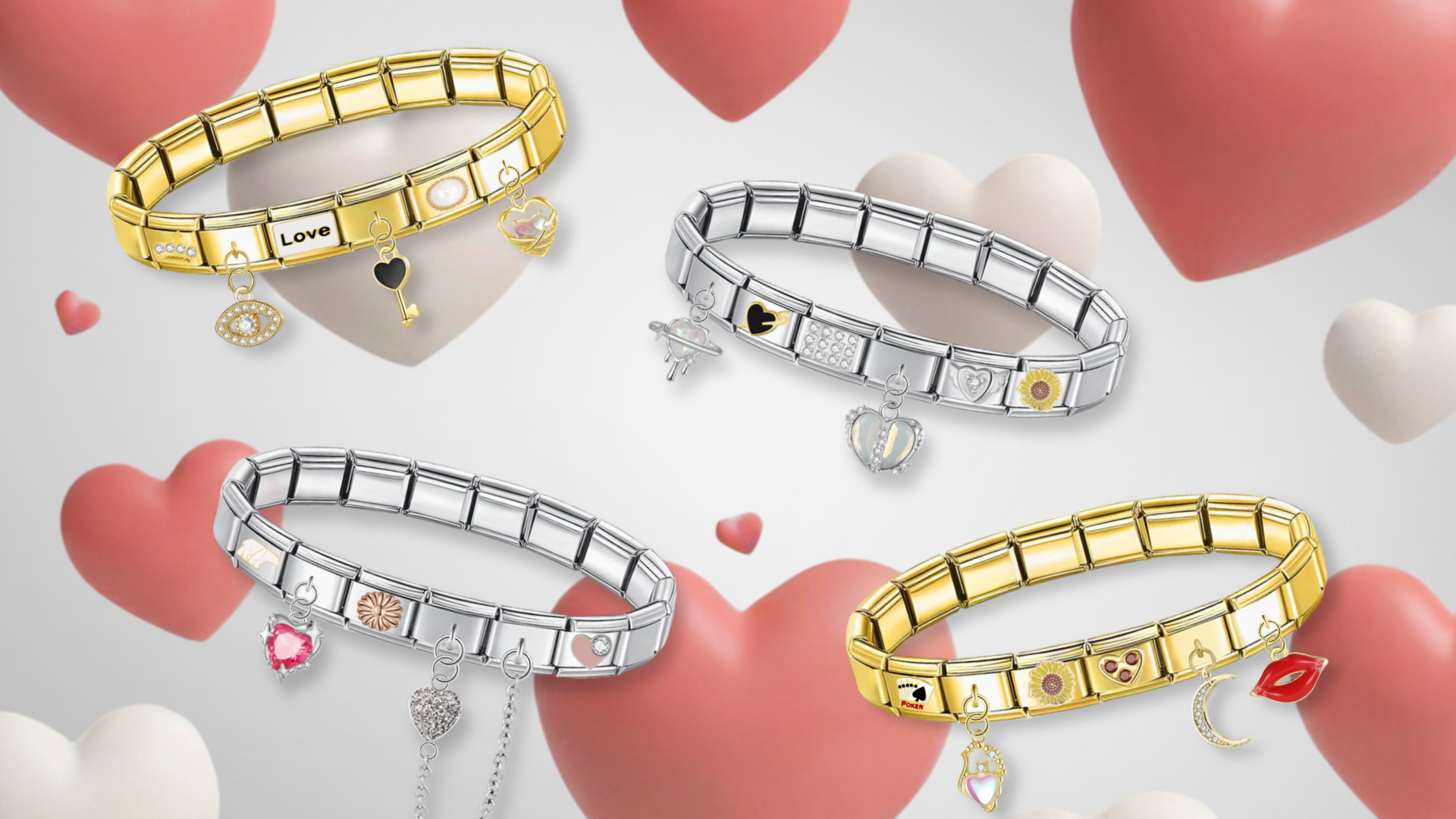 Trèfle à 4 feuilles en Or Rose et Pierres Blanches