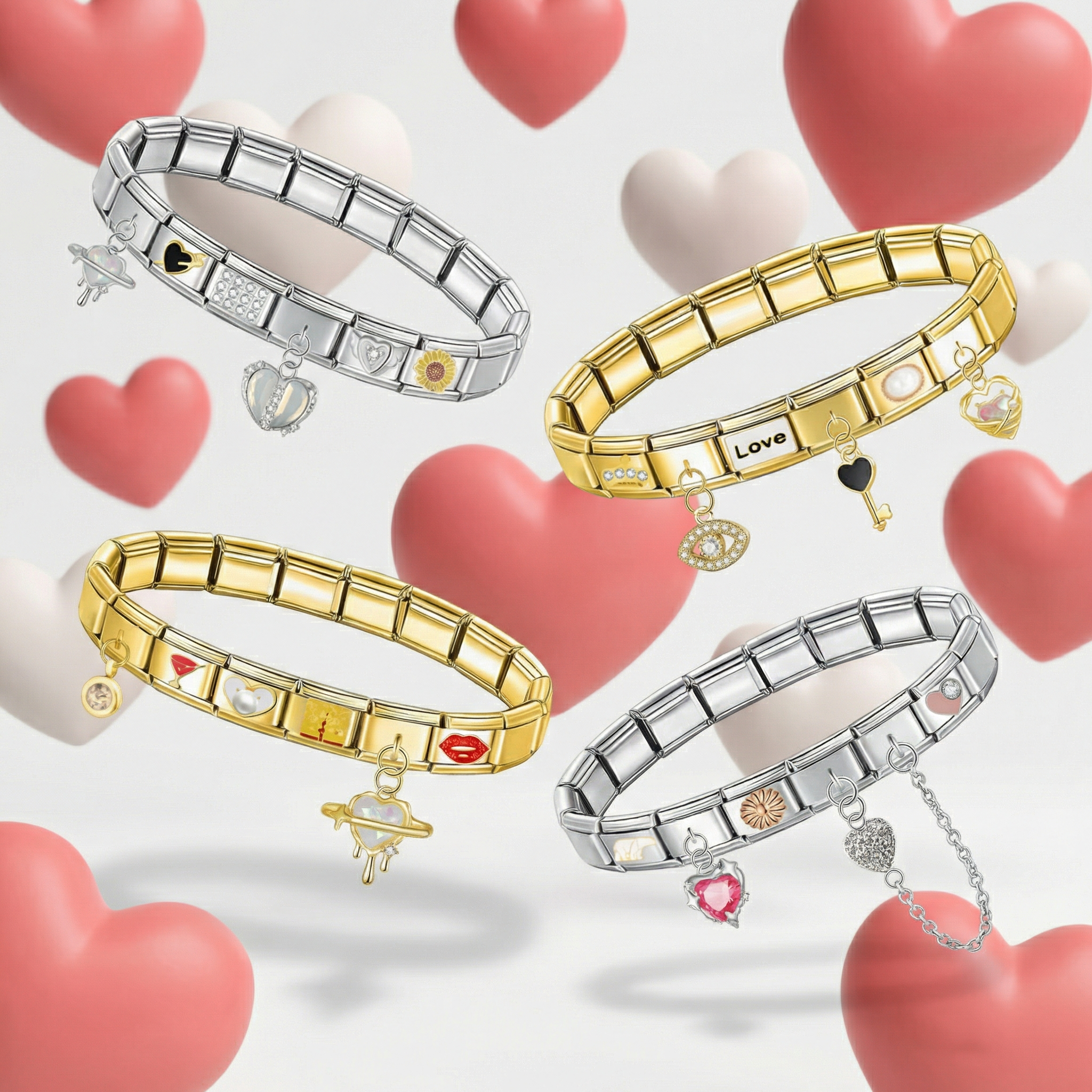 Trèfle à 4 feuilles et sa tige, en pierres dorées et blanches