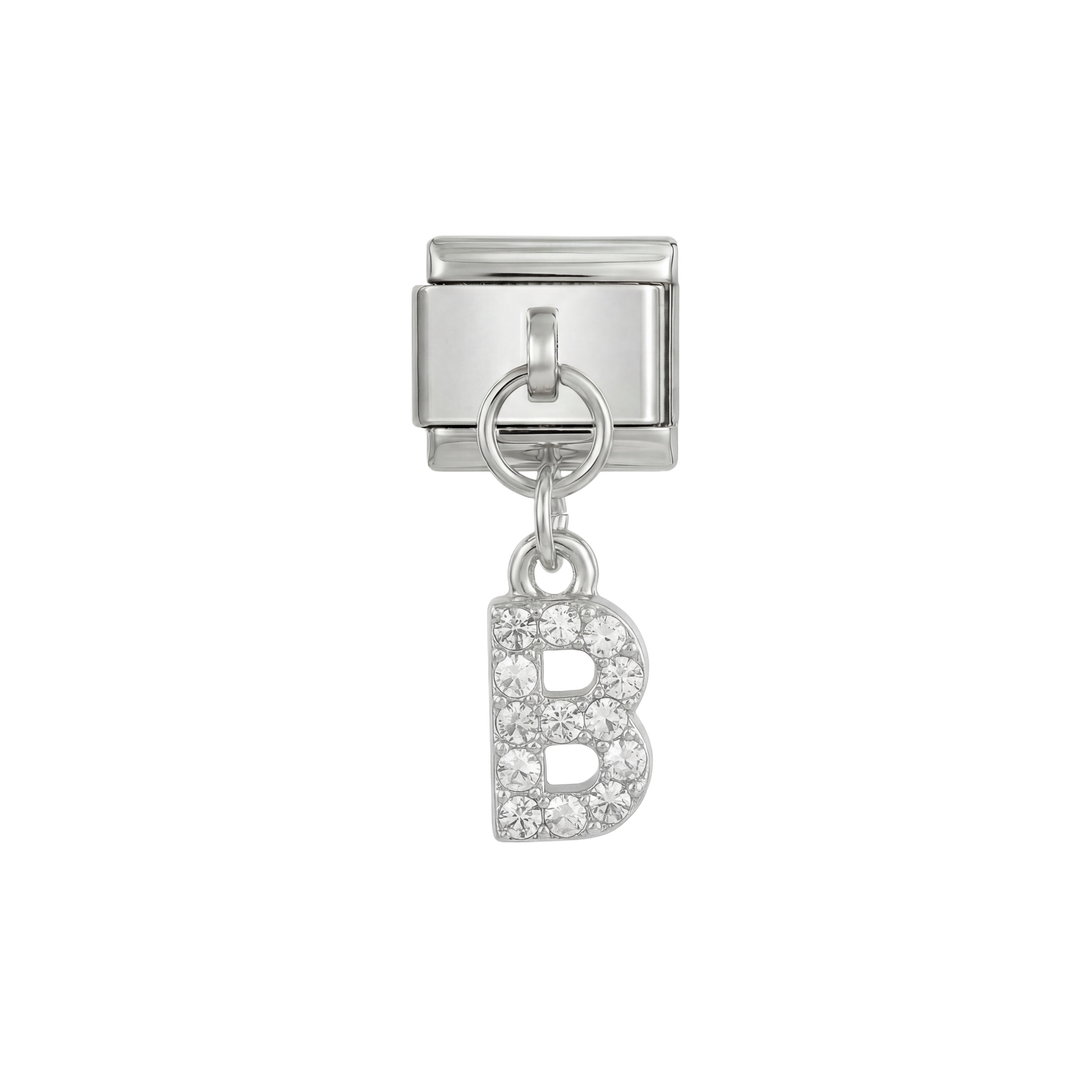 Lettre B, suspendue, sur argent